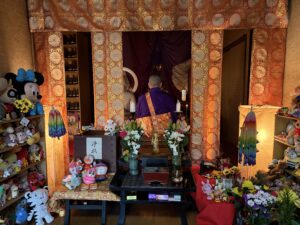 皆様が今まで大切にされてきた思い出深いお雛様・剥製のうさぎ・ぬいぐりみ・こけしなどに報恩感謝を奉げ般若心経をお唱えいたしました。